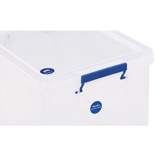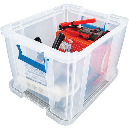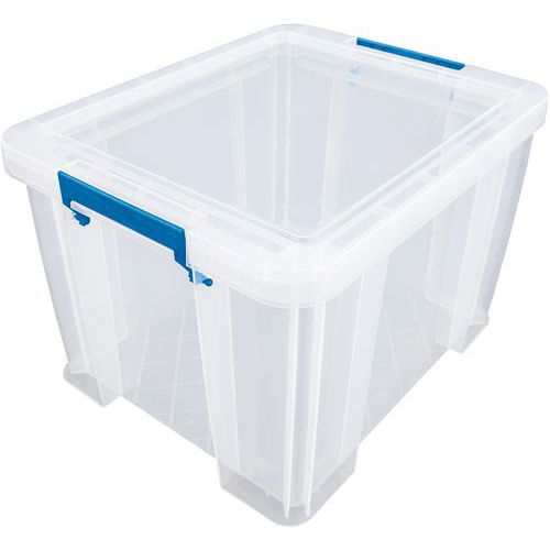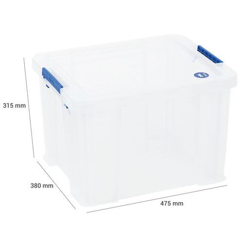 Förvaringsbehållare och lock - robust och tålig behållare för all slags förvaring. Handtagen gör den enkel och praktisk att transportera. Behållaren är genomskinlig vilket gör det snabbare att se och hitta objekten inuti.