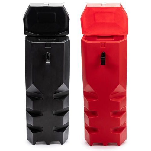 - Toppladdad brandsläckarbox för 9–12 kg släckare, avsedd för montering på kommersiella fordon.
