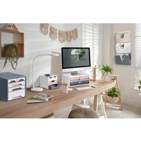 Förvaringsmodul för små kontorsartiklar och tillbehör. Tre utbytbara lådstorlekar (förutom halvlådor) för flexibel inredning. Ergonomiska handtag och mjuk glidfunktion med stopp. Levereras med halk- och reptåliga fötter. Användbara mått: ½ låda 322 x 108 H 37 mm, standardlåda 322 x 244 H 40 mm, maxilåda 322 x 244 H 85 mm. Rymmer mappar upp till 24 x 32 cm. Totalmått 360 x 288 H 270 mm.