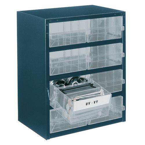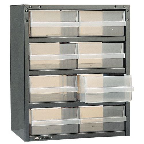 | Varunamn | Förvaringsskåp för små delar 250-serien, Material: Stål, Total höjd: 435 mm, Total bredd: 360 mm |
