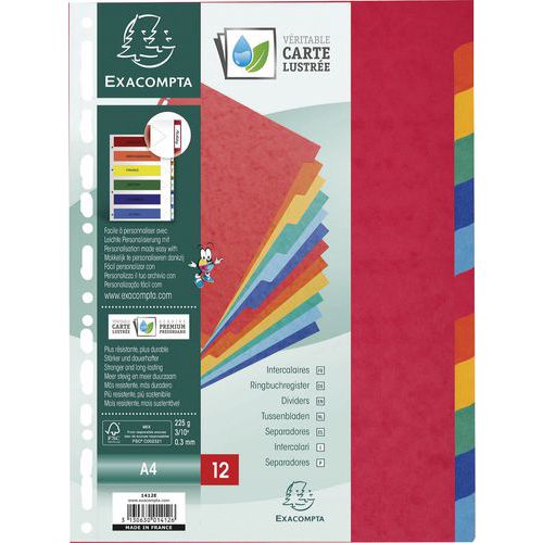 Glansig kortavdelare med neutrala flikar, 225 g/m² - Exacompta