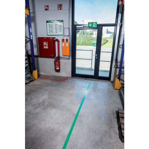 Används för permanent markering av områden som behöver uppmärksammas t ex spärrområden för tillfälligt gods eller råvarumaterial.