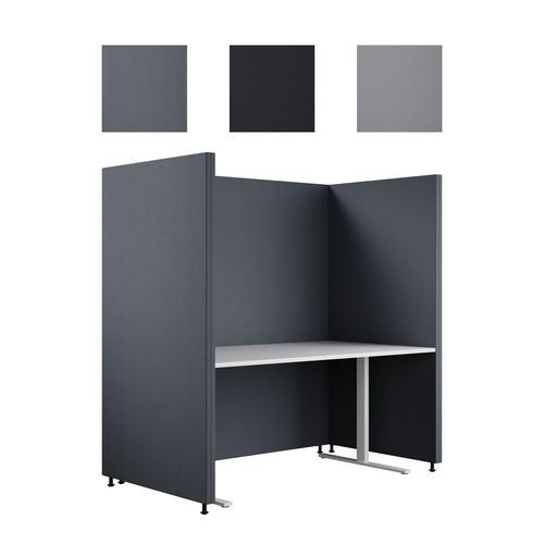 - Båset består av textilklädda skärmar med en ljudabsorberande kärna i en stabil ram av massivt trä.