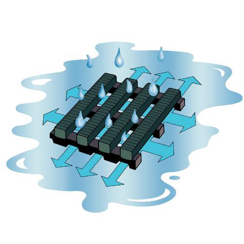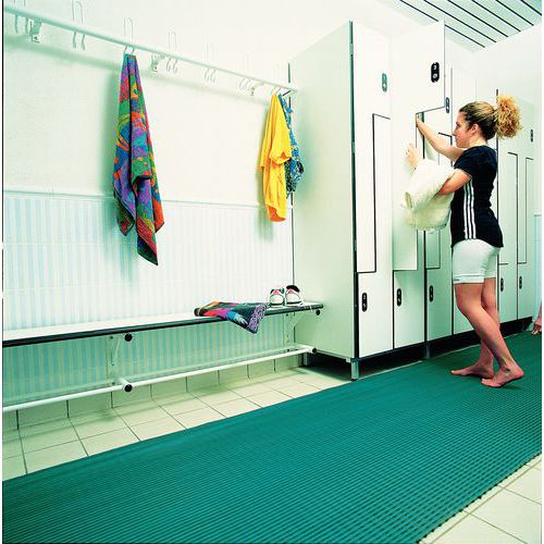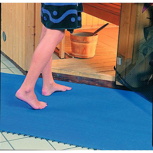 Nyskapande koncept: effektiv dränering av vatten. Lätta att kapa, montera och ta bort. Med halkskydd som ger utmärkt stabilitet. Antibakteriella golvplattor.