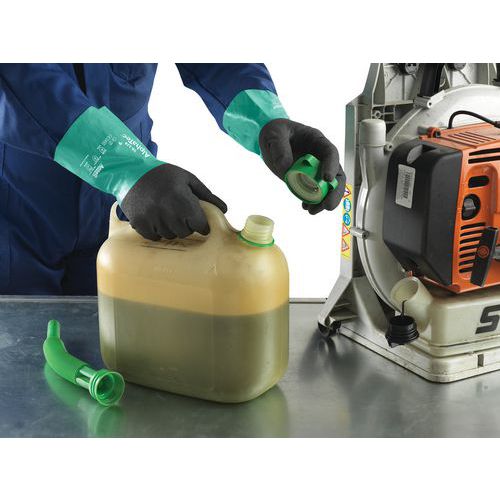 - Skyddshandskar mot kemikalier i nitril för överlägset handskydd mot irriterande kontaktvätskor.