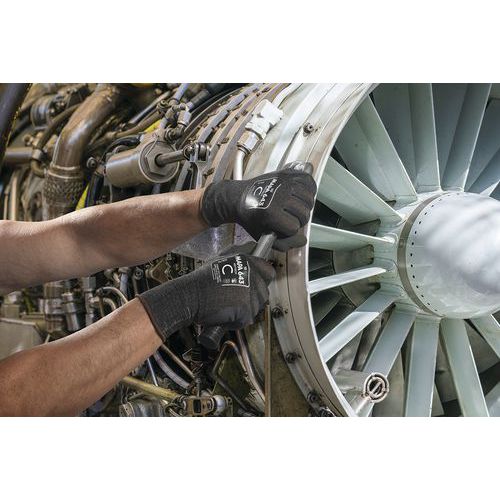 Sömlös stickad handske för maximal komfort, god fingerkänsla och smidighet med hög skärbeständighet (nivå C). Andningsförmåga, smidighet och bevisad hållbarhet hos beläggningen. Skärnivån är lätt att identifiera tack vare markeringen på handskens baksida. Silikonfria för att undvika spår, defekter på plåt och glas före målningen. Kompatibla med skärmar och pekenheter. Dermatologiskt godkända.