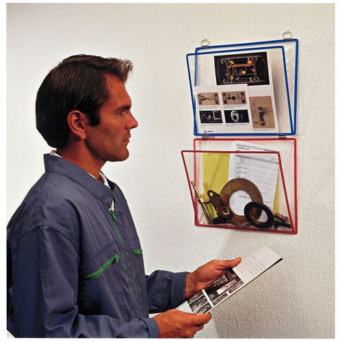 - Liggande format. Två fästöglor för väggfästning. Perfekt för in- och utgående post, men även för andra dokument. Blå, Röd, Grön, Gul, Svart.