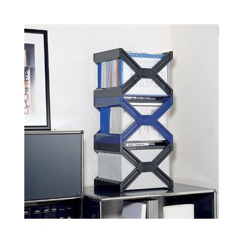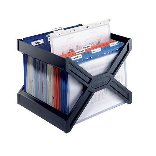 - Fristående ställ för hängmappar, avsett för placering i lådor, hyllor eller direkt på skrivbord.