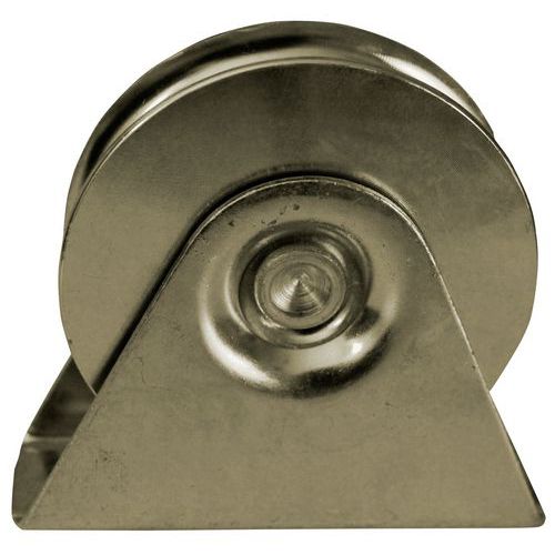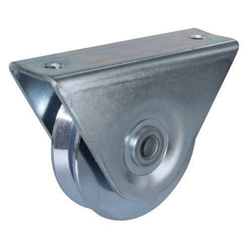 - Hjul av förzinkat stål med V-format spår och yttre fäste för optimal rörelse.