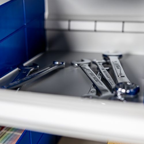 | Varunamn | Hög förvaringshylla med fack - Manutan Expert |