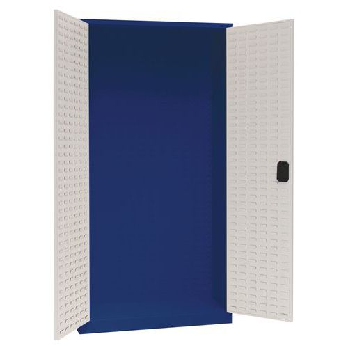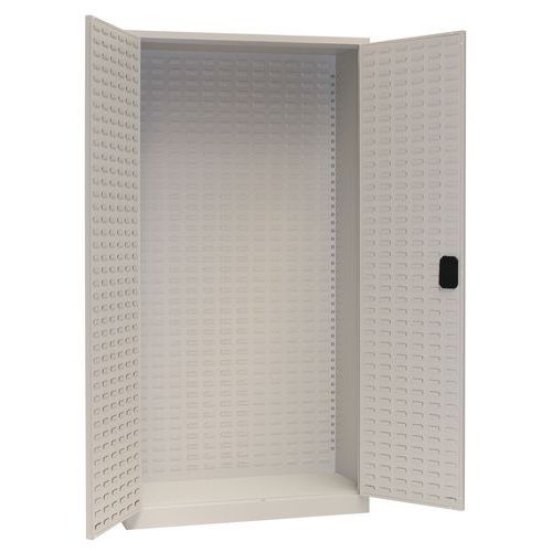 - Skåp med paneler i dörrar och rygg för upphägning av backar. Hög säkerhet genom robust cylinderhänglås. Spanjolettstängning möjligt. Justerbar höjd med reglerbara fötter. Slitage- och reptåligt verkstadsskåp.