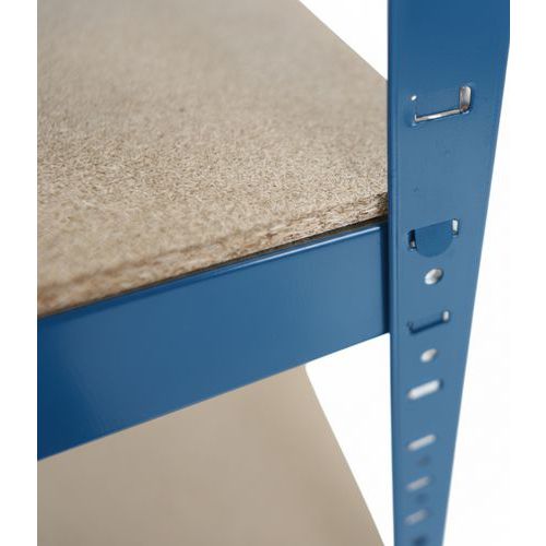 Stabila och tåliga Hylla Budget II är ett ekonomiskt alternativ för dig som behöver en flexibel verkstadshylla. Korta stolpar för olika konfigurationsmöjligheter - perfekt för lager, verkstad, garage, redskapsskjul och så vidare. Sammansättning: 4 stolpar, 5 spånskivor, 1 monteringsanvisning – monteras utan verktyg.