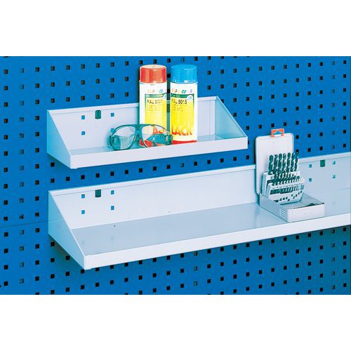 Praktisk hylla för dina verkstadskomponenter. Robust, 6 mm tjock design. Fäst stativet på nolltid med säkerhetsklämmorna i plast.