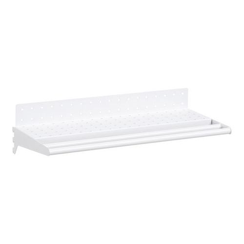 - Perforerad hylla med klädstång och konsoler som passar till våra vägghängda och fristående skensystem.