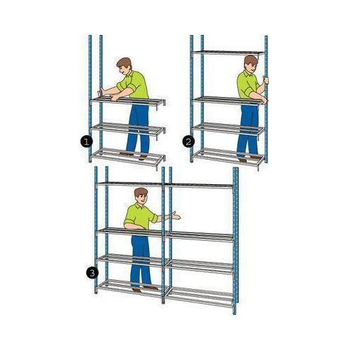 - 3. Fortsätt enligt 1. och bygg till önskat antal sektioner och hyllplan.