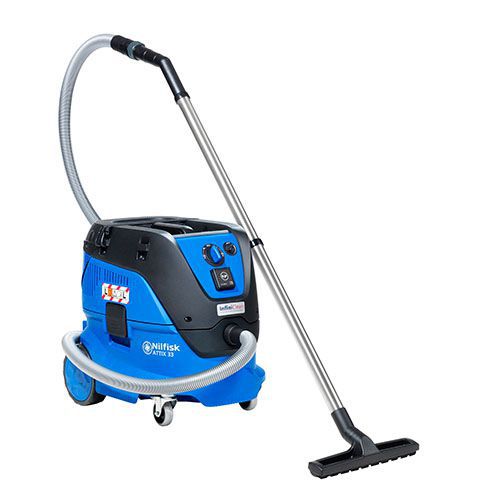 - ATTIX 33 serien är utvecklad och designad, så de har ännu högre effektivitet, ökad produktivitet och lägre driftskostnader. ATTIX 33 våt-/torrsugarna är robusta och enkla att hantera - även vid transport från plats till plats. Alla modellerna har flexibla förvaringslösningar för verktyg och tillbehör. Nilfisk InfiniClean™ systemet rengör automatiskt filtret var 15:e sekund. ATTIX 33 serien finns i säkerhetsklasserna L och M. Våt-/torrsugarna har en 100 % tät luftström, även under filterrengöringen, så eventuellt farligt damm stannar i maskinen.