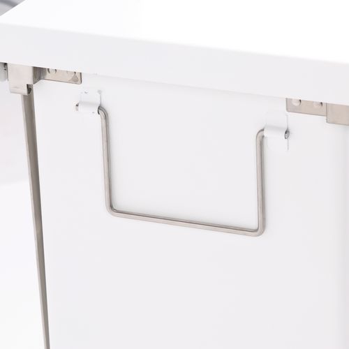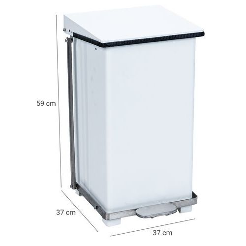 Denna robusta vita soptunna öppnas med en pedal och är både brand- och väderbeständig.