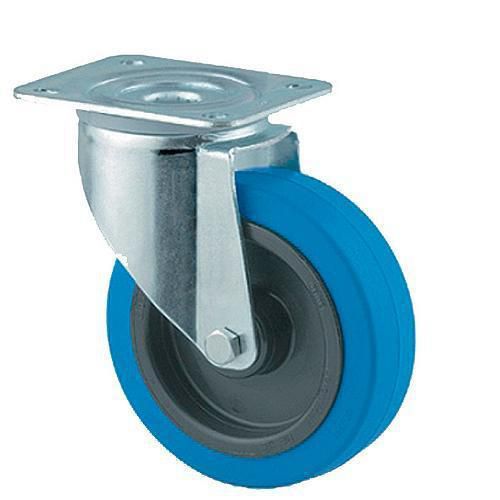 - Hjul med diameter 100 mm har rullager och blå slitbana.