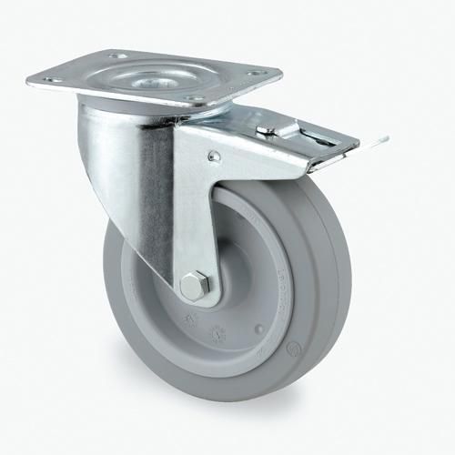 - Hållare är av förzinkad stålplåt med dubbla svängkranslager. Dubbelverkande broms som låser både hjul och svängkrans.