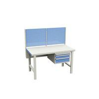 - Bänken har en hög perforerad plåt och ett perforerat verktygsskåp för effektiv verktygsförvaring och organisering.