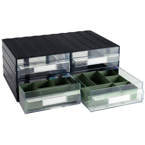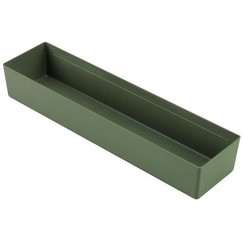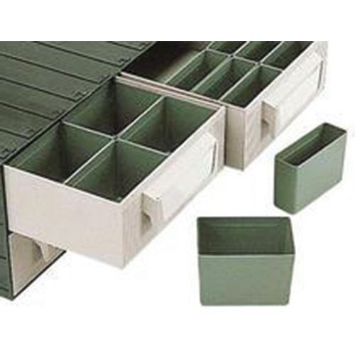 Gröna, uttagbara fack i olika storlek för olika typer av lådmoduler. Skapa ett praktiskt förvaringssystem för dina delar. Tillbehör till Lådhurts Solid.