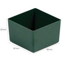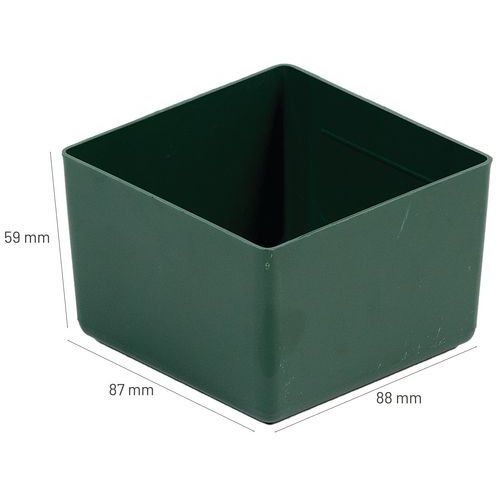 Gröna, uttagbara fack i olika storlek för olika typer av lådmoduler. Skapa ett praktiskt förvaringssystem för dina delar. Tillbehör till Lådhurts Solid.