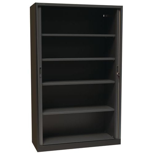Ett kompakt och mycket lätthanterligt skåp. Hyllplanen kan flyttas för att ge plats åt hängmappar. Reptålig epoxifinish. Plastjalusierna låses med ett cylinderlås. Skåpet levereras med 2 nycklar till cylinderlåset. Brandklass : M1 Garanti : 10 år Maximal vikt per hyllplan (kg) : 45 kg