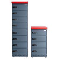 JiWaCharge laddskåp för cykelbatterier är ett CE-märkt, robust skåp med 4 eller 8 fack, utvecklat för säker utomhusförvaring och laddning av elcykelbatterier.