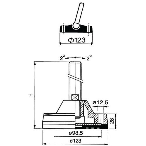 | Varunamn | Justerbar fot i polyamid – Ø 123 mm – 4 500 kg – förzinkat stål, Skaft, material: Stål, Skaft, längd: 146 mm |