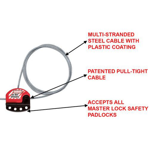 - Justerbar låskabel från Master Lock, perfekt för grupp- och flerpunktsspärrar.