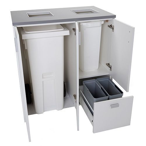 - Snygg återvinningslösning med en serie produkter för både stora och små behov av sortering.