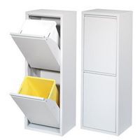 - Praktiska skåp för källsortering där vippluckorna öppnas på samma gång - med avskalad design som passar in i alla slags miljöer.