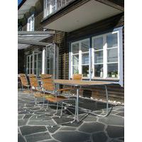 Stolens ram är av förzinkad massiv ståltråd, som är belagt med ett ytskikt kallat Aquares för förlängd hållbarhet, och sits i textilene – ett lättskött och snabbtorkande material.