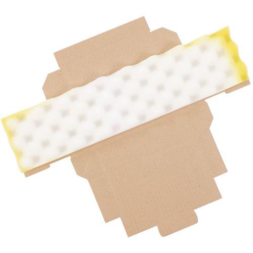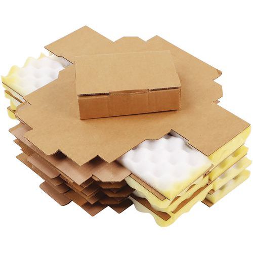 Enkel och snabb förslutning med flik. Fraktlåda med inre och yttre skydd. Skumplast som invändigt material utan freoner (CFC och HCFC).