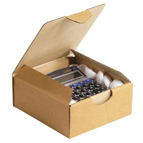 Speedbox en prisvärd fraktlåda med många användningsområden. Tillverkad i brun enkelwell av 100 % återvunnet material. Tack vare lådans flikar är den snabb och enkel att montera Levereras omonterad i platta förpackningar om 50 st. 100 % biologiskt nedbrytbara. 50 st/fp