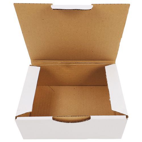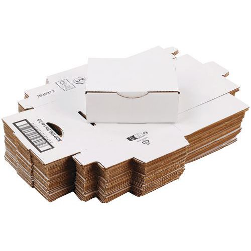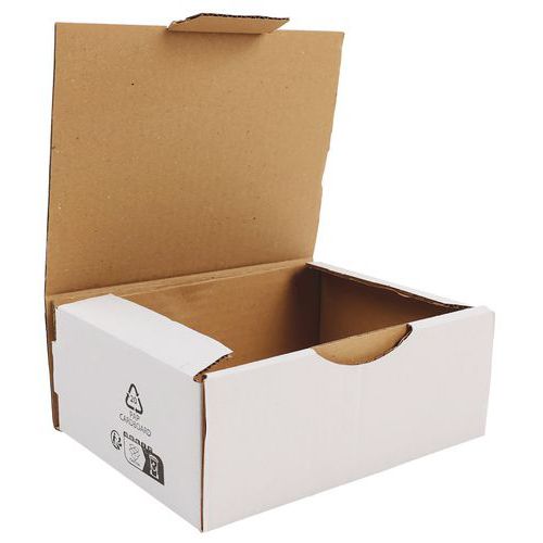 Speedbox en prisvärd fraktlåda med många användningsområden. Tillverkad i vit enkelwell av 100 % återvunnet material. Tack vare lådans flikar är den snabb och enkel att montera. Levereras omonterad i platta förpackningar om 50 st. 50 st/fp 100 % biologiskt nedbrytbara.