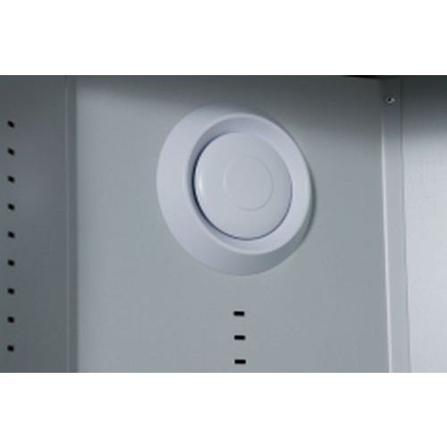 Ventilationen ombesörjs genom tallriksventiler uppe och nere i skåpets vänstra innerhörn, ventilerna är sammankopplade med en inbyggd lodrät ventilationskanal (Ø 105 mm).