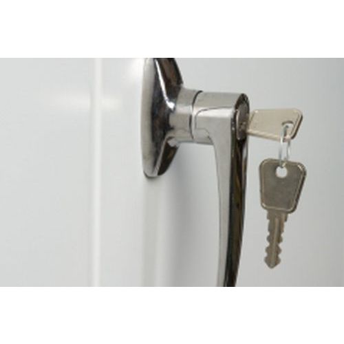 Dörr, gavel, rygg, tak och botten är i så kallad sandwichkonstruktion, med mellanliggande isolering.