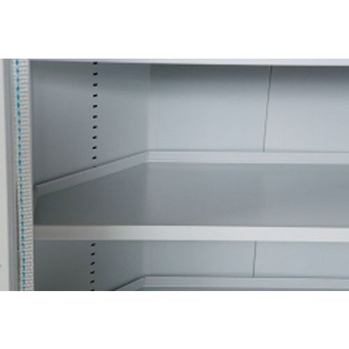 Samtliga hyllplan har uppvikta kanter för att förhindra spill och uppsamlingsvolymen per hyllplan samt skåpets botten är 7 liter vardera på artikelnummer 46610/46611 och 9 liter vardera på 59307.