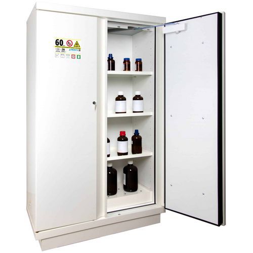 Kemikalieskåp F60 brandsäkert med ventilation, för brandsäker förvaring av större mängder farliga varor.