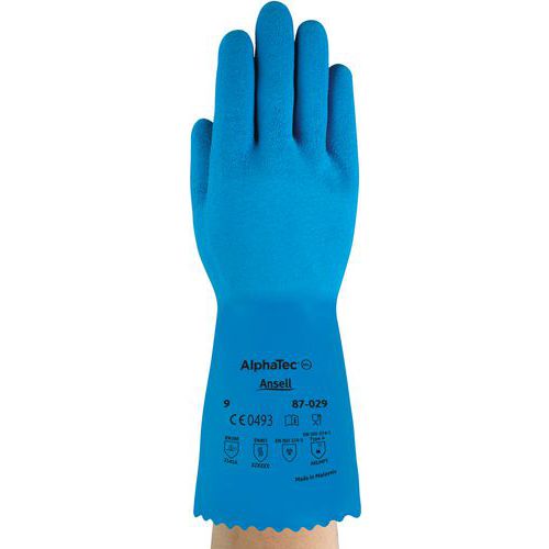 Kemskyddshandske Astroflex, Textilmaterial: Latex, Färg: Blå, Handskstorlek: 9, Antal par: 1