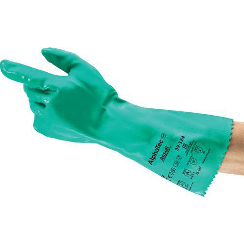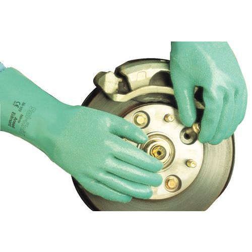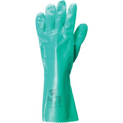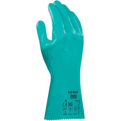 | Varunamn | Kemskyddshandske Sol-Knit, Material: Nitril, Färg: Grön, Handskstorlek: 9, Foder, material: Bomull |