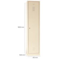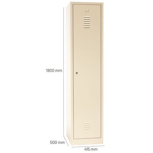 Dörrar som förstärkts med osynliga gångjärn. Optimal öppning på 180°. Hygieniskt: ventilation upptill och nertill på klädskåpsdörrarna. 1 separationsvägg för rena och smutsiga kläder. 1 hylla, 1 stång och 2 krokar per fack, hål för väggmontering och etiketthållare. Plåt, tjocklek : 7/10e Garanti : 10 år