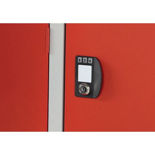 Klädskåp Modulo, enkelskåp - perfekt för till exempel kontorsmiljöer där man behöver förvaring av ytterkläder och väskor. Plasthandtag med cylinderlås och etiketthållare. Skåp med monteringssats och monteringshål för att kunna montera dem rygg mot rygg mot varandra. Rundade hörn: optimal säkerhet. Klädskåpet har ventilationsöppning under facket - för en frisk skåpsmiljö. Reptålig epoxibeläggning och ljuddämpande plastkuddar. Kan kombineras med bänkar och sluttande tak. Levereras med 2 nycklar för cylinderlås, monteringssats, stång, klädkrokar och hatthylla. Garanti : 10 år Plåt, tjocklek : 7/10e