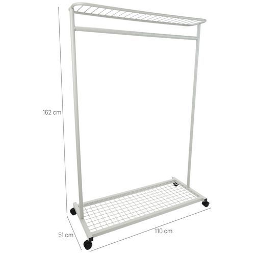 - Med lång stång i stål för perfekt upphängning av rockar och andra plagg.