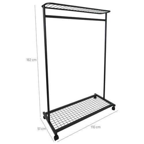 Klädställ på hjul Smart, Höjd: 162 cm, Bredd: 110 cm, Färg: Svart, Typ av produkt: Klädställ på hjul