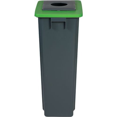 80-liters kärl för sortering av papper, förpackningar och glas (välj lock efter avfall att återvinna). Smidig förflyttning och hantering av kärl tack vare handtag. Kompakt yttre gör kärlet perfekt för sortering av avfall för inomhus - bygg er egen återvinning med flera olika kärl. Färgade lock med olika slags öppningar anger på ett enkelt sätt i vilken behållare varje typ av avfall ska slängas.