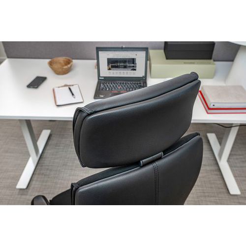 Den höga ryggen med justerbart nackstöd ger optimal avlastning för nacke och skuldror, medan de höj- och sänkbara armstöden säkerställer bästa möjliga sittkomfort.