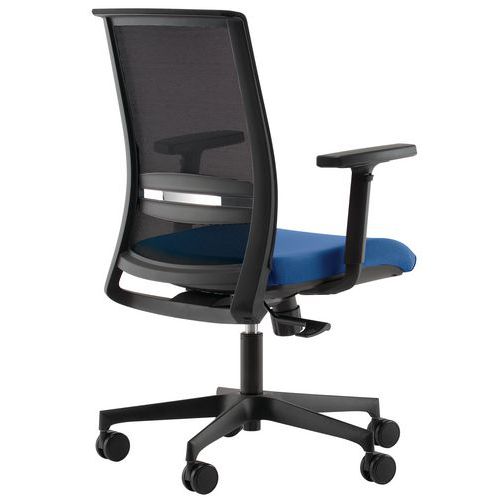 Kontorsstol med armstöd och ryggstöd i mesh, mycket bekväm.