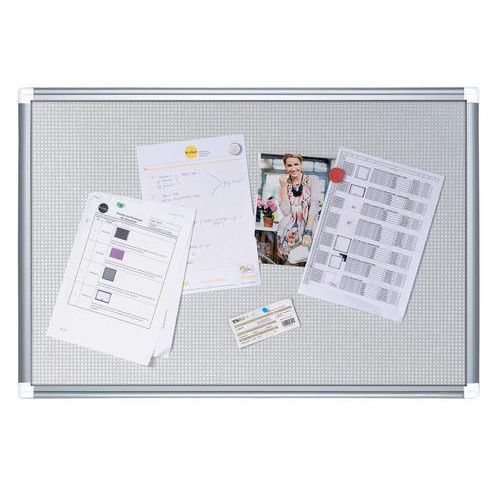 Bra och enkelt stöd för att sprida information kring projekt och säljsiffror eller bara ha som kom-ihåg tavla vid din kontorsplats. Metallnät ovanpå tavelytan. Både kartnålar och magneter kan användas. Hjälper till och hålla dokumenten oskadade. Anodiserad aluminiumram. Kit för väggmontering medföljer. Kombinationen av magneter och kartnålar gör att denna tavla är maximalt allsidig och slitstark.